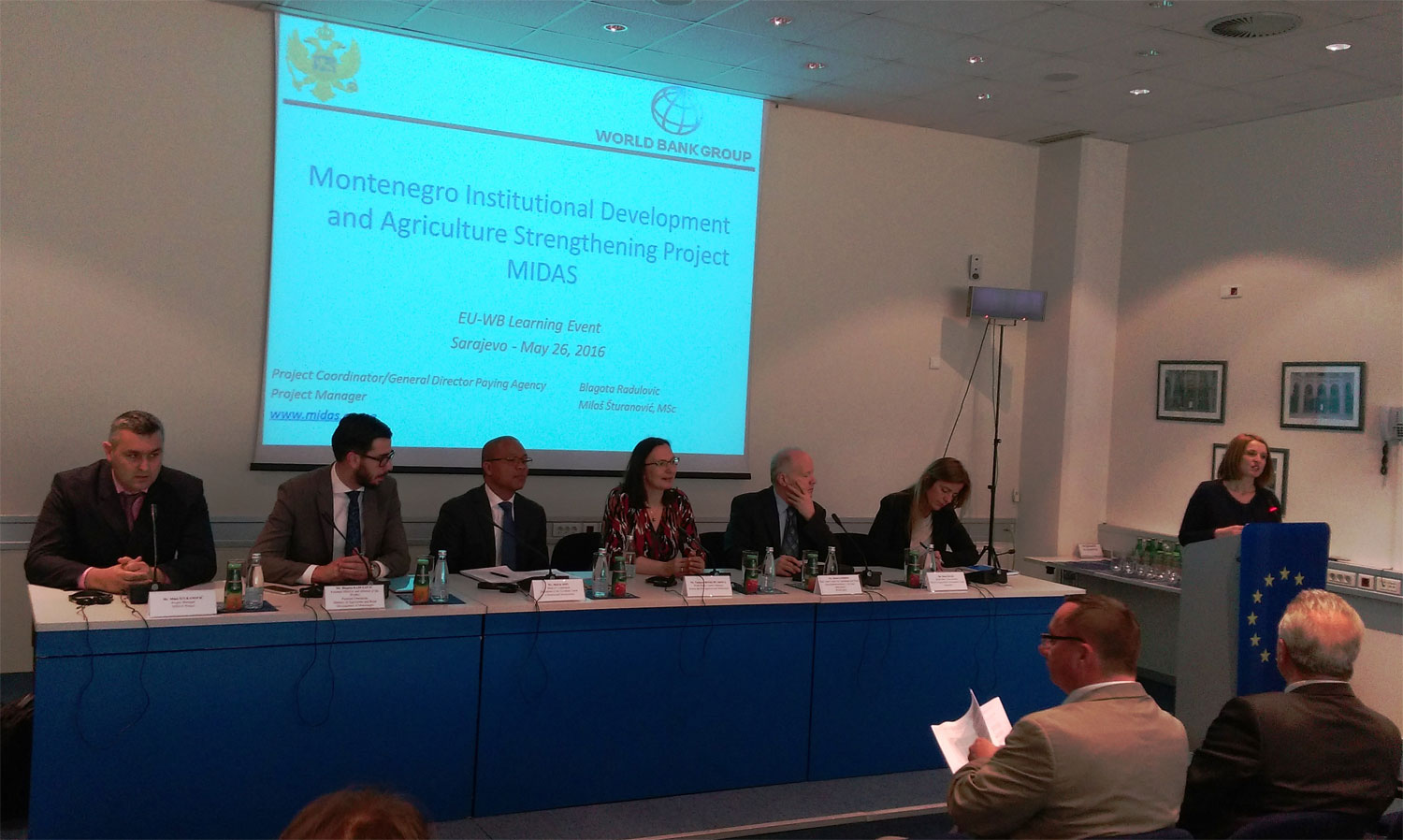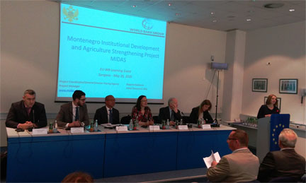 Na poziv Delegacije Evropske unije u Sarajevu i predstavnika kancelarije Svjetske banke, generalni direktor Direktorata za plaćanja Ministarstva poljoprivrede i ruralnog razvoja i koordinator MIDAS projekta, Blagota Radulović i menadžer projekta, Miloš Šturanović, učestvovali su 26. maja 2016. godine, na događaju “Poljoprivreda i ruralni razvoj – izazovi i mogućnosti”, povodom predstavljanja uspješne implementacije projekta “Institucionalnog razvoja i jačanja poljoprivrede Crne Gore”, koji realizuje Ministarstvo poljoprivrede i ruralnog razvoja, a finansira se iz sredstava (IBRD zajam i GEF donacija) Svjetske banke.